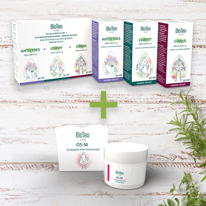 Specijalna ponuda: Biljni komplet br. 1 za kardiovaskularni i nervni sistem + OS-m melem protiv bolova u mišićima, zglobovima i kostima