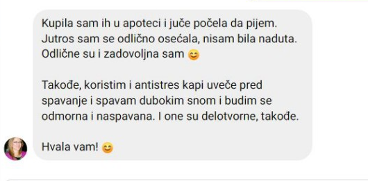 ANTISTRES je dodatak ishrani na bazi ekstrakata korijena sa rizomom odoljena, lista matičnjaka i cvijeta lavande. Korijen sa rizomom odoljena, list matičnjaka i cvijet lavande mogu da pomognu održanju mentalnog zdravlja i dobrih kognitivnih sposobnosti, kod nesanice i za opuštanje.