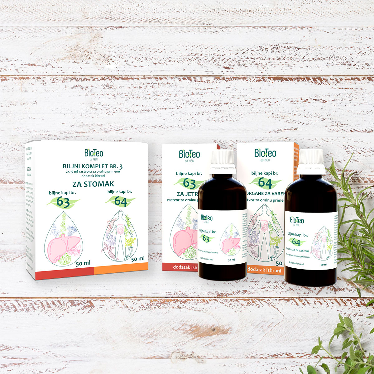 BILJNI KOMPLET BR. 3 (Biljne kapi br. 63 + Biljne kapi br. 64), 2 x 50 ml, rastvor za oralnu primjenu ZA STOMAK