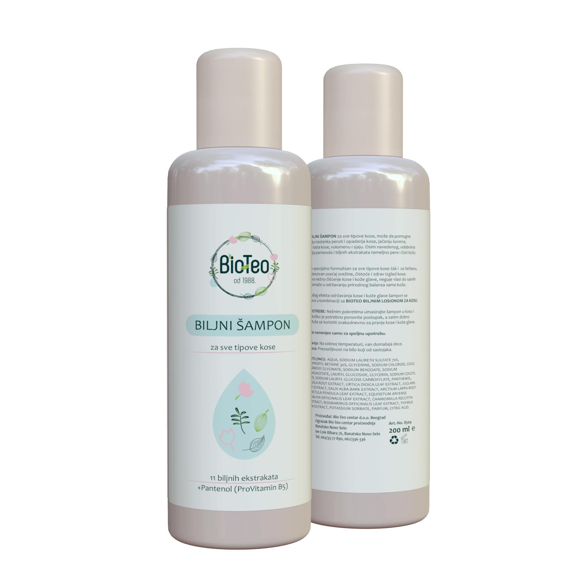 Pored ove tri biljke, u sastav BIOTEO BILJNOG ŠAMPONA ulaze još i ekstrakti oraha, vrbe, čička, rastavića, žalfije, ruzmarina i timijana, kao i pantenol za dodatnu njegu kose.