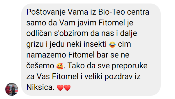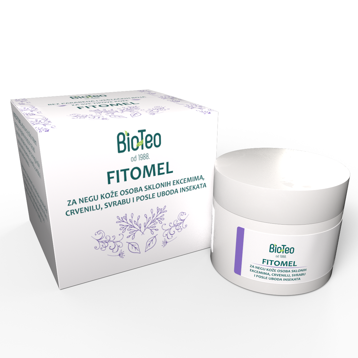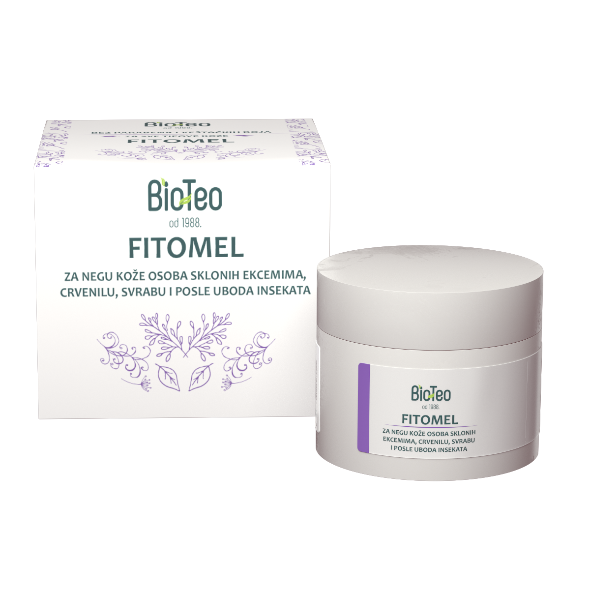 BIOTEO FITOMEL jedinstven je biljni melem kreiran po originalnoj recepturi na bazi prirodnih sastojaka, namijenjen za njegu kože osoba sklonih ekcemima, crvenilu, svrabu i nakon uboda insekata. Za njegu i zaštitu osjetljive kože lica i tijela, sprječava dehidrataciju i stimuliše procese epitelizacije i regeneracije svih tipova kože.